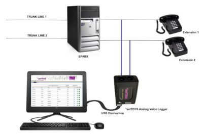 Analog voice logger is a PC based call recorder which is capable to record calls from an analog trunk or its extension line. The analog line voice logger is capable of logging all call details. Easy to install solution which can be managed from a simple computer.