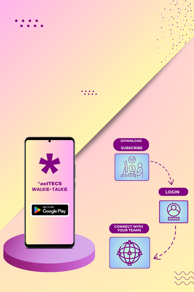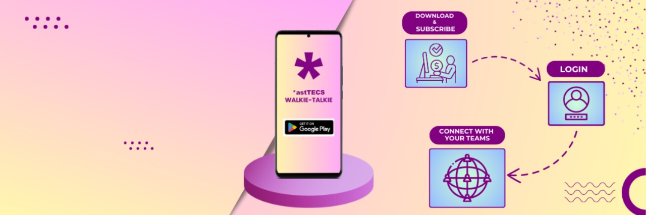 *astTECS walkie talkie is an Android app-based solution designed for businesses for seamless communications among teams while they are on the move. With a SIP protocol, the solution enables the teams to have two-way communication without interruption over an extended range, making it an ideal solution for businesses looking to boost productivity and stay connected.