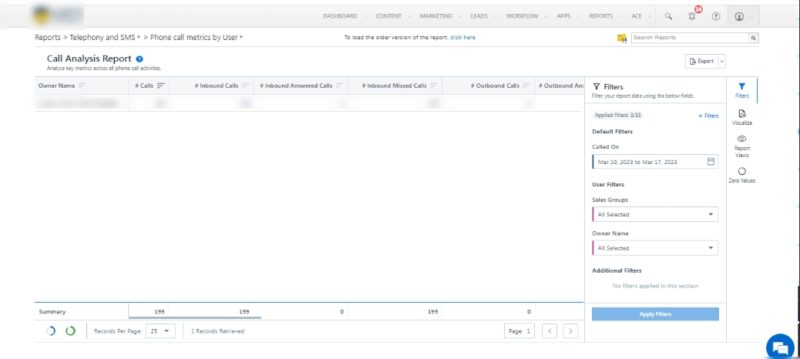 Screenshot of reports of leadsquared integration with asterisk telephony