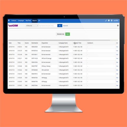 Monitor agent activity from anywhere using our real time dashboard. The reports include for dialing, break-time, success & failed calls.